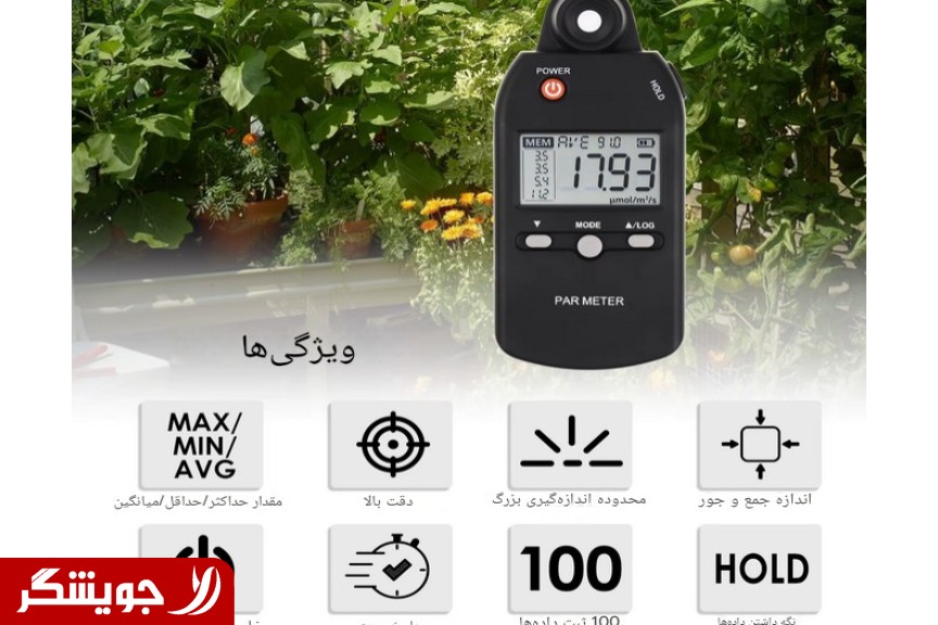 با استفاده از این دستگاه می‌توانید میزان دقیق شار فوتونی (PPFD) که به سطح برگ گیاه می‌رسد را در طیف نوری 400 تا 700 نانومتر بررسی کنید. این ابزار به شما کمک می‌کند تا بهترین مکان برای کاشت یا قرارگیری گلدان‌ها را شناسایی کرده، ارتفاع چراغ‌های رشد (Grow Light) را بهینه کنید و از سلامت و بهره‌وری حداکثری محصولات خود اطمینان حاصل نمایید.