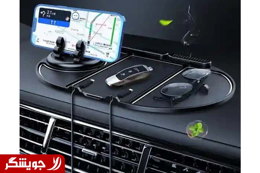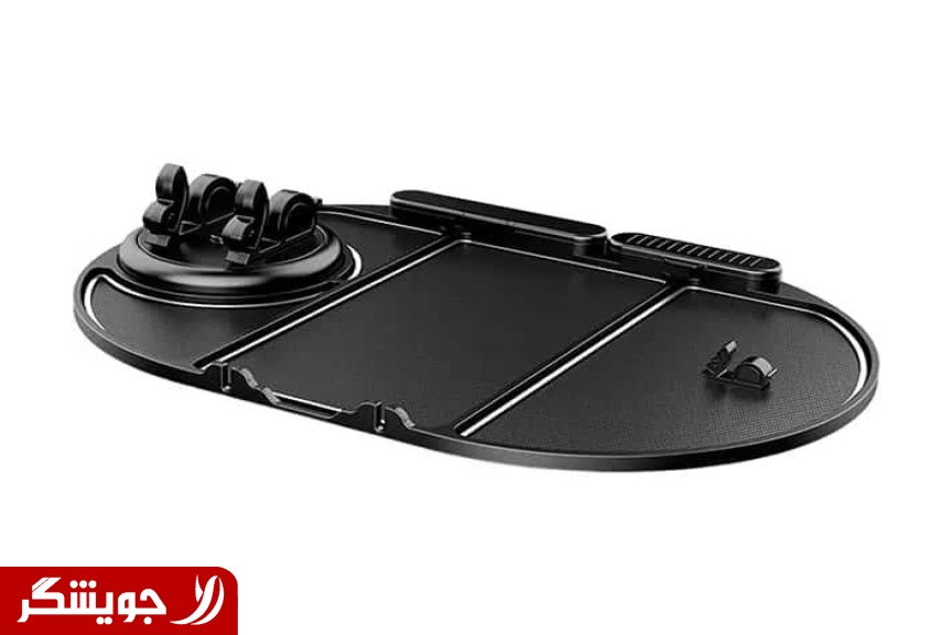 ضدلغزش و چند منظوره،مناسب برای نظم دادن به داشبورد ماشین،ضد آب و قابل شست و شو محصولی مناسب جهت نظم دادن به داشبورد ماشین،دارای نگه دارنده موبایل و تبلت و آیپد با قابلیت چرخش 360 درجه،امکان قرار دادن موبایل به صورت عمودی و افقی دارای دو عدد شیار برای عبور دادن کابل شارژر،دارای پارک نامبر و قابلیت مخفی کردن آن،دارای جا عینکی،امکان قرار دادن انواع وسایل کوچک مانند ایرپاد،ساعت،فلش و هر وسیله کوچک دارای محلی برای قرار دادن پد مخصوص خوشیو کننده،تنها کافیست که پد همراه محصول را به یک محلول خوشبو آغشته کنید مناسب برای انواع گوشی موبایل و تبلت،قابل استفاده بر روی داشبورد انواع خودرو،میزکار،میز مطالعه،میز آرایشی و سطوح صاف به همراه این محصول یک عدد برچسب اعداد،یک عدد پد خوشبو کننده و چسب دوطرفه نیز می باشد