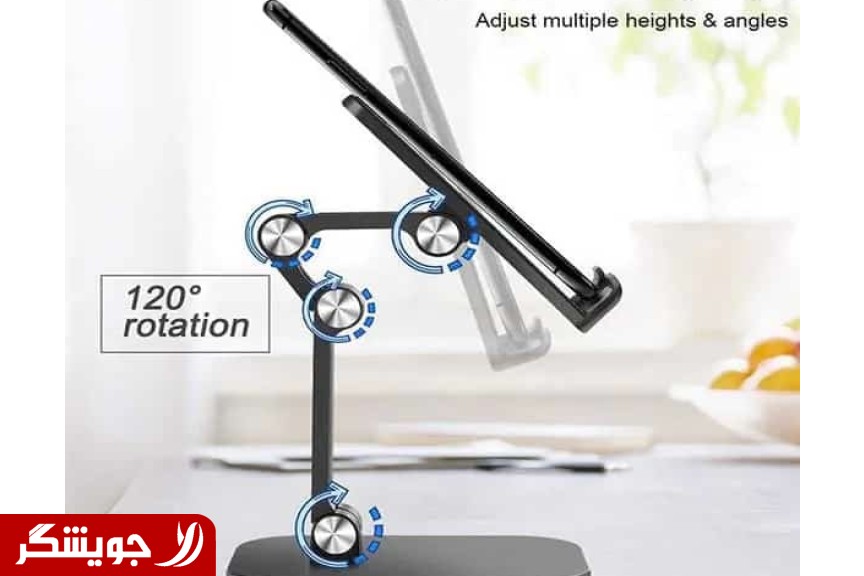 ارتفاع نگهدارنده در حالت کاملا باز 26 سانتی متر است که قابلیت جمع شدن ،خم شدن از قسمت پایه ها و همچنین قسمت نگهدارنده گوشی را دارد.در نتیحه شما با خم کردن این پایه ها میتوانید بهترین زاویه دید را برای خود تنظیم کرده و به تماشای فیلم های ویدیوی، تماس های تصویری و … بپردازید.