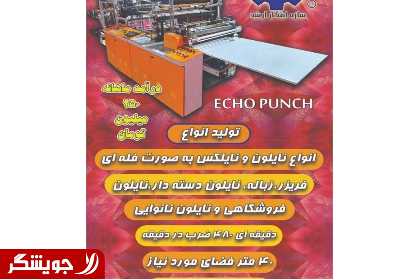 دوخت و پانچ اتوماتیک ساخت شرکت سازه ابتکار ارشد مناسب تولید انواع نایلکس، کیسهفریزر، دستهدار، رولی و محصولات فروشپُر پلاستیکی سرعت بالا – کیفیت ثابت – مصرف برق کم مشخصات دستگاه: سرعت تولید: تا 480 پانچ در دقیقه برق موردنیاز: سهفاز 16 آمپر تعداد اپراتور: 1 نفر فضای لازم: حدود 40 متر نوع عملکرد: دوخت + پانچ بازدهی تقریبی: مناسب درآمد حدود 250 میلیون تومان سیستم کنترل: دیجیتال با اپراتوری آسان مزایا: راهاندازی سریع مصرف پایین پشتیبانی و خدمات قیمت مناسب و بازگشت سرمایه کوتاه مناسب کارگاه کوچک و نیمهصنعتی جهت قیمت و مشاوره تماس بگیرید (قیمت تماس — ویژه خریدار واقعی) (در پایین آگهی)آقای روستایی (در پایین آگهی)خانم نادری