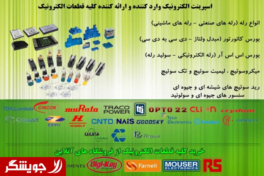 • بورس انواع رله،اس اس آر، کانورتور،میکروسوئیچ،لیمیت سوئیچ،تک سوئیچ ،رید سوئیچ شیشه ای ، سنسور و سولونید