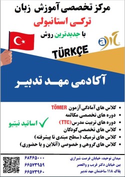 موسسه آوا تدبیر مرکز تخصصی زبان ترکی استانبولی 4 ماهه زبان ترکی استانبولی یاد بگیرید آموزش با متد های نوین و اصولی کلاس از طریق ودیو پروژکتور 02166573959
