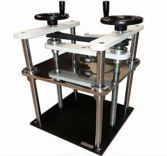 صفحات فشاری جهت انجام آزمون بار عمودی ظروف شیشه ای • به همراه 4 محور راهنمای صفحات فشاری • جنس صفحات از فولاد CK45 با پوشش کروم سخت ( فروش دستگاه تست صفحات فشاری )